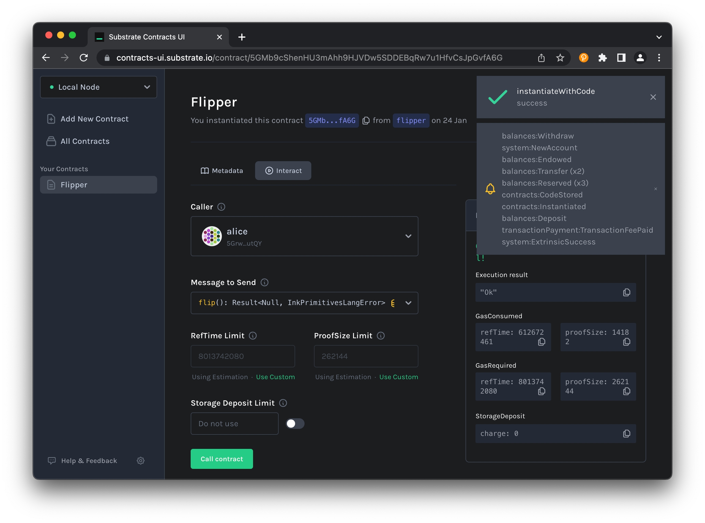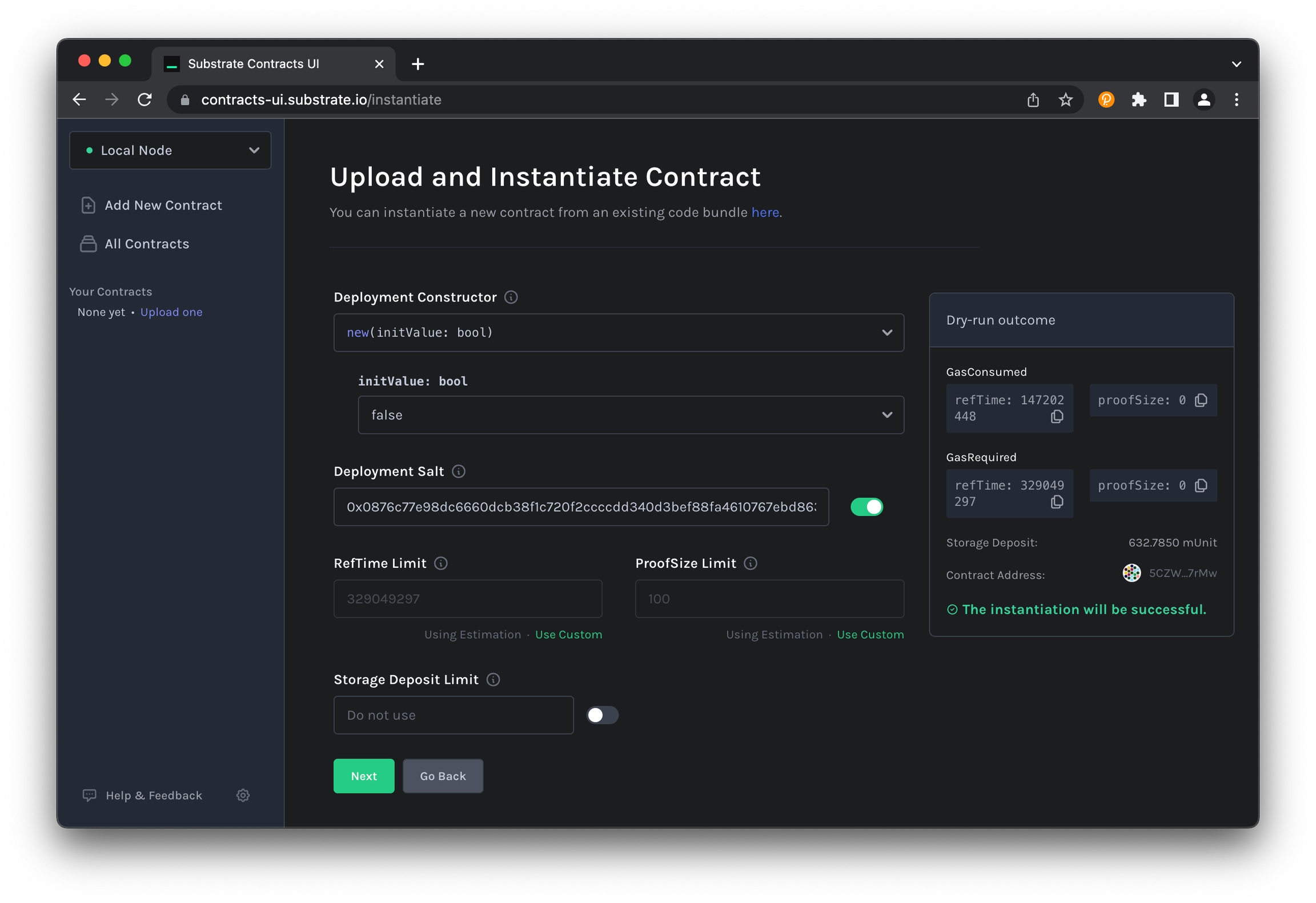 cargo contract instantiate --suri //Alice --args trueLast updated